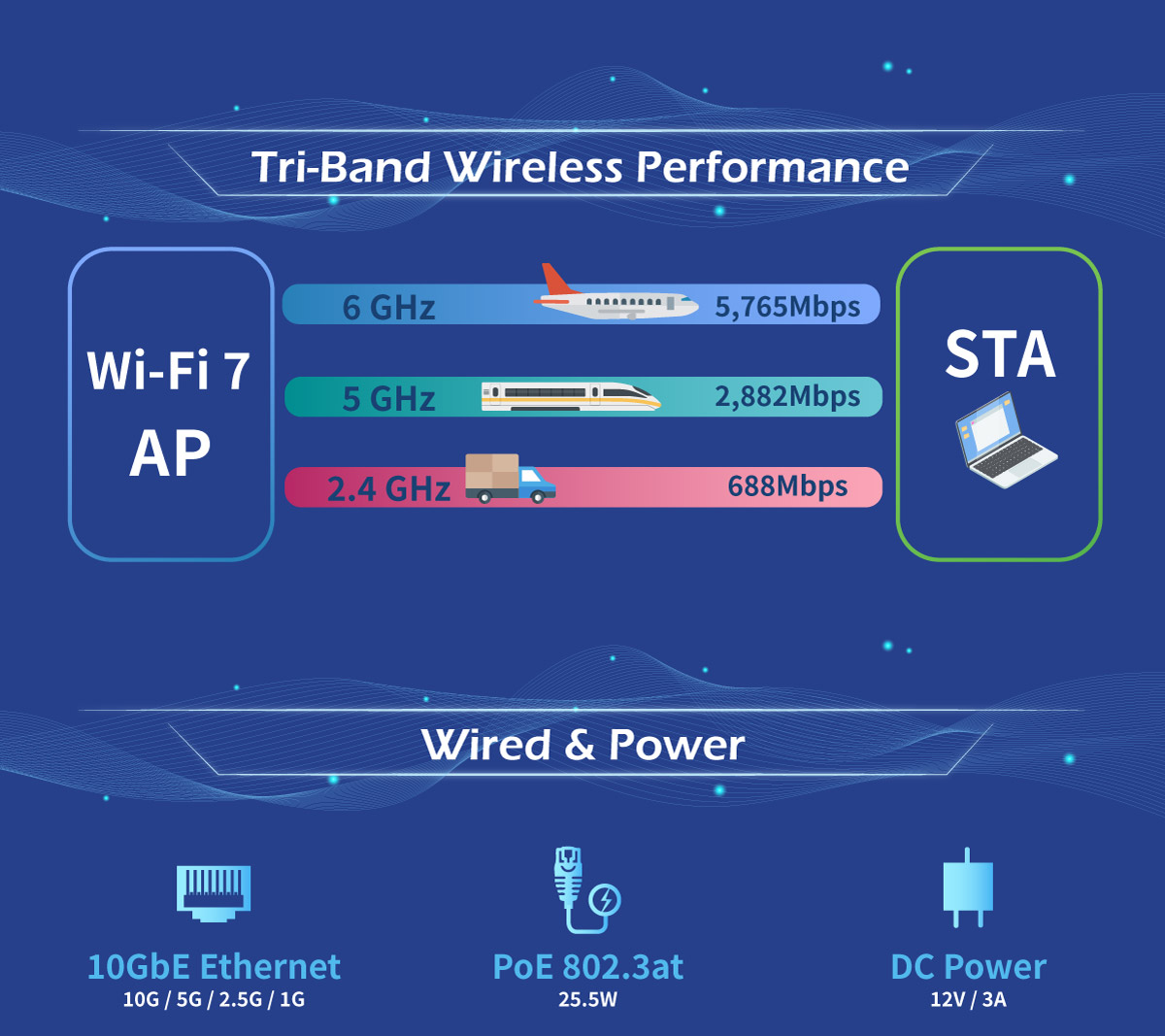 · Tri-Band Concurrent (2.4 / 5 / 6 GHz)